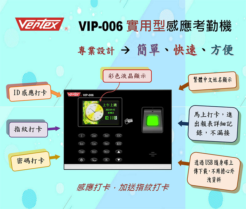 智慧考勤機 ::Vertex世尚 VIP-006 智慧型考勤機 指紋/感應/密碼三合一