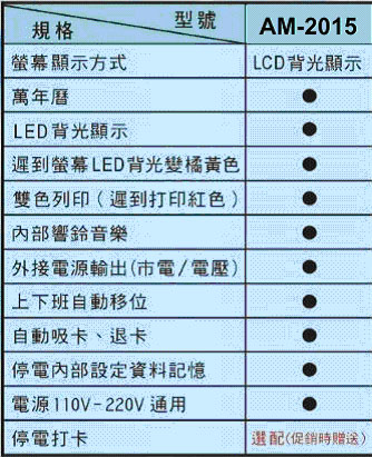 VERTEX AM-2015 六欄位微電腦打卡鐘