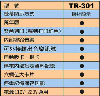 VERTEX TR-301 六欄位微電腦打卡鐘