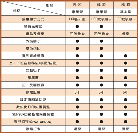 - 停電記憶保存功能,不必擔心停電後的時間設定問題。具卡片辨識功能,避免正,反面誤打。